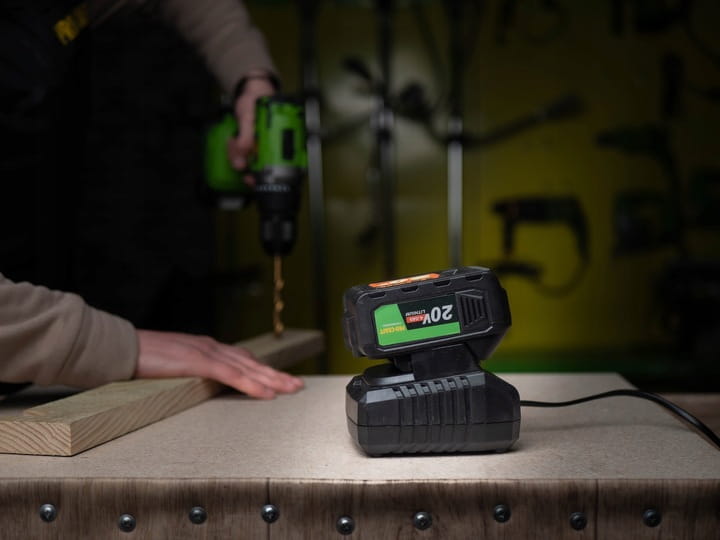Główną zaletą narzędzi akumulatorowych jest to, że można ich używać bez podłączania do sieci. Aby pracy nie zakłócił rozładowany akumulator, zestaw wyposażono w dwa akumulatory oraz ładowarkę