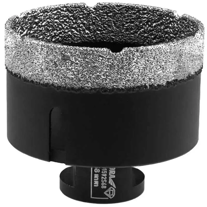 Koronka diamentowa Vacuum Brazed przeznaczona jest do wykonywania otworów w płytkach ceramicznych, gresie,betonie, cegle, szkle, asfalcie, laminatach, PCV, stali, metalach nieżelaznych, drewnie itp. Technologia Vacuum Brazed gwarantuje dużą czystość, wytrzymałość połączenia ziaren diamentu z osnową i korpusem. Brak lutowanych czy spawanych laserowo elementów (segmentów diamentowych), które mogą zostać oderwane od korpusu podczas pracy, zapewniają bezpieczeństwo pracy narzędziem. Zastosowanie gwintu M14 umożliwia montaż koronki do każdej szlifierki kątowej. Koronki VB mogą być przeznaczone do pracy na sucho i mokro