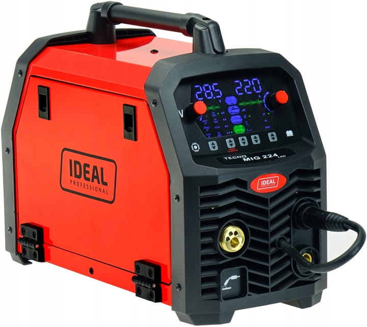 Inwertorowy półautomat spawalniczy Ideal TECNOMIG 224 LED 4x4 to profesjonalne urządzenie MIG/MAG z napędem 4-rolkowym, zapewniającym stabilne podawanie drutu nawet przy większych szpulach i długich przewodach. Wyposażony w cyfrowy panel LED, umożliwia precyzyjną kontrolę parametrów pracy oraz łatwe przełączanie pomiędzy trybem synergicznym a manualnym. Dzięki dużej mocy 220 A i szerokim możliwościom regulacji, sprawdzi się zarówno w warsztatach przemysłowych, jak i przy pracach serwisowych.
