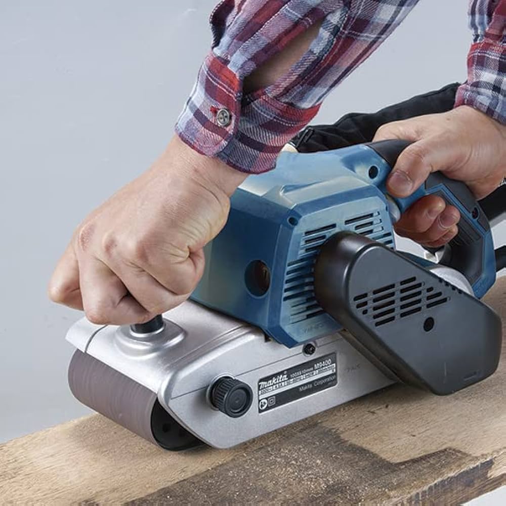 Wydajna szlifierka taśmowa Makita przeznaczona do szybkiego i efektywnego usuwania materiału.
