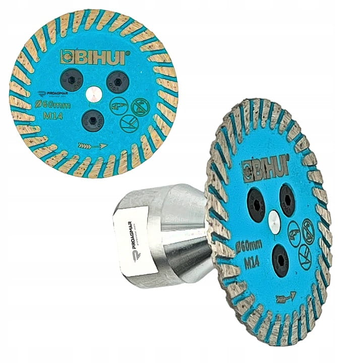 Bihui DCW60 to specjalistyczna tarcza diamentowa o średnicy 60 mm z gwintem M14, zaprojektowana do podcinania i precyzyjnej obróbki krawędzi płytek ceramicznych, gresu i innych materiałów twardych. Tarcza przeznaczona do pracy ze szlifierkami kątowymi bez potrzeby stosowania dodatkowych adapterów. Idealna do korekt montażowych, wycięć przy krawędziach, narożnikach i otworach.