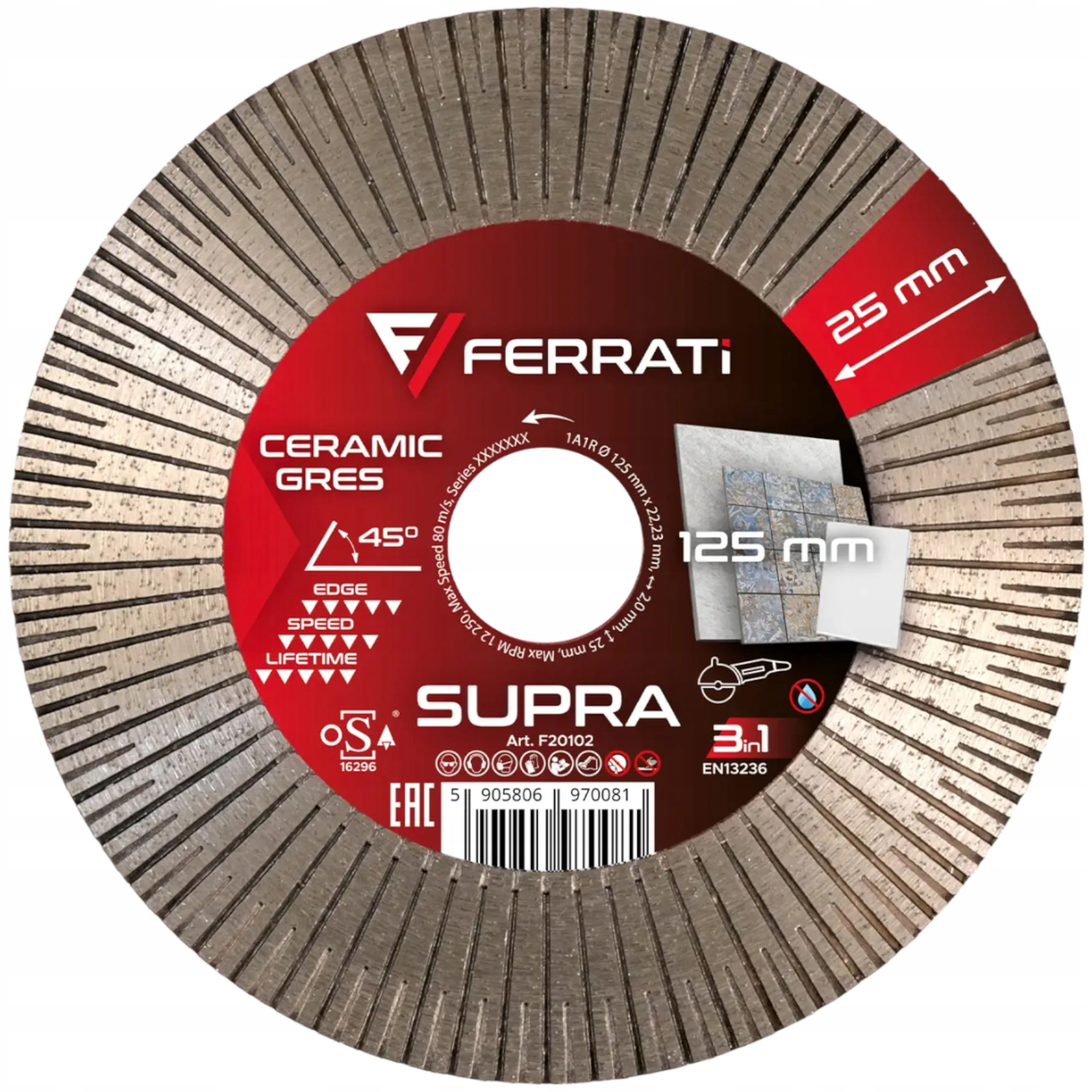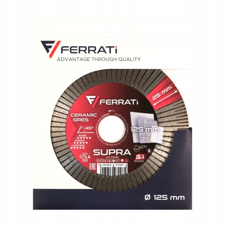 Tarcza Diamentowa Tnąca i Szlifująca SUPRA 125mm Ferrati