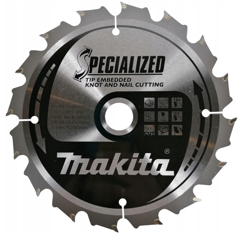 MAKITA PIŁA TARCZOWA 165x20x16z SPECJALIZED DREWNO (Z GWOŹDZIAMI I SĘKAMI)