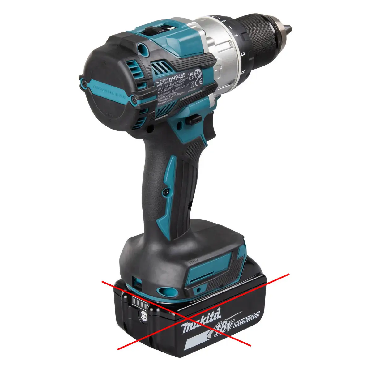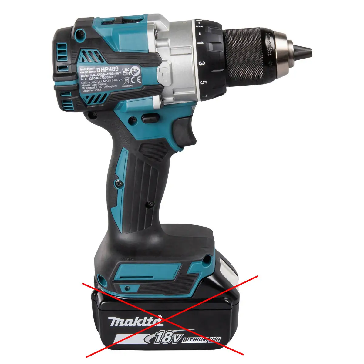 Dwubiegowa akumulatorowa wiertarko-wkrętarka Makita DHP489Z 73Nm z silnikiem bezszczotkowym (BLDC), zasilana akumulatorem 18V, z podwyższoną odpornością na pył i wilgoć (XPT)