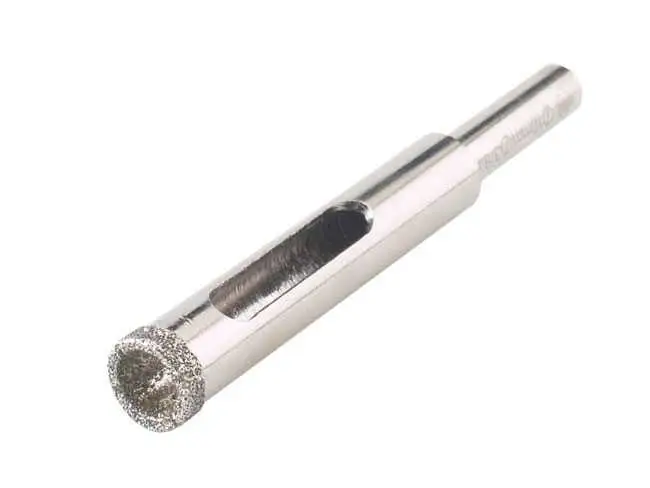 - Korpus wiertła wykonany jest ze stali, końcówka wykonana jest z diamentu osadzonego elektrolitycznie.
