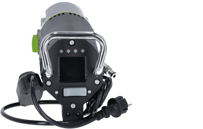 - Wyświetlacz LCD - wyświetlacz podaje wiele istotnych parametrów pracy, takich jak napięcie i moc pobieranego prądu, temperaturę czy licznik czasu pracy