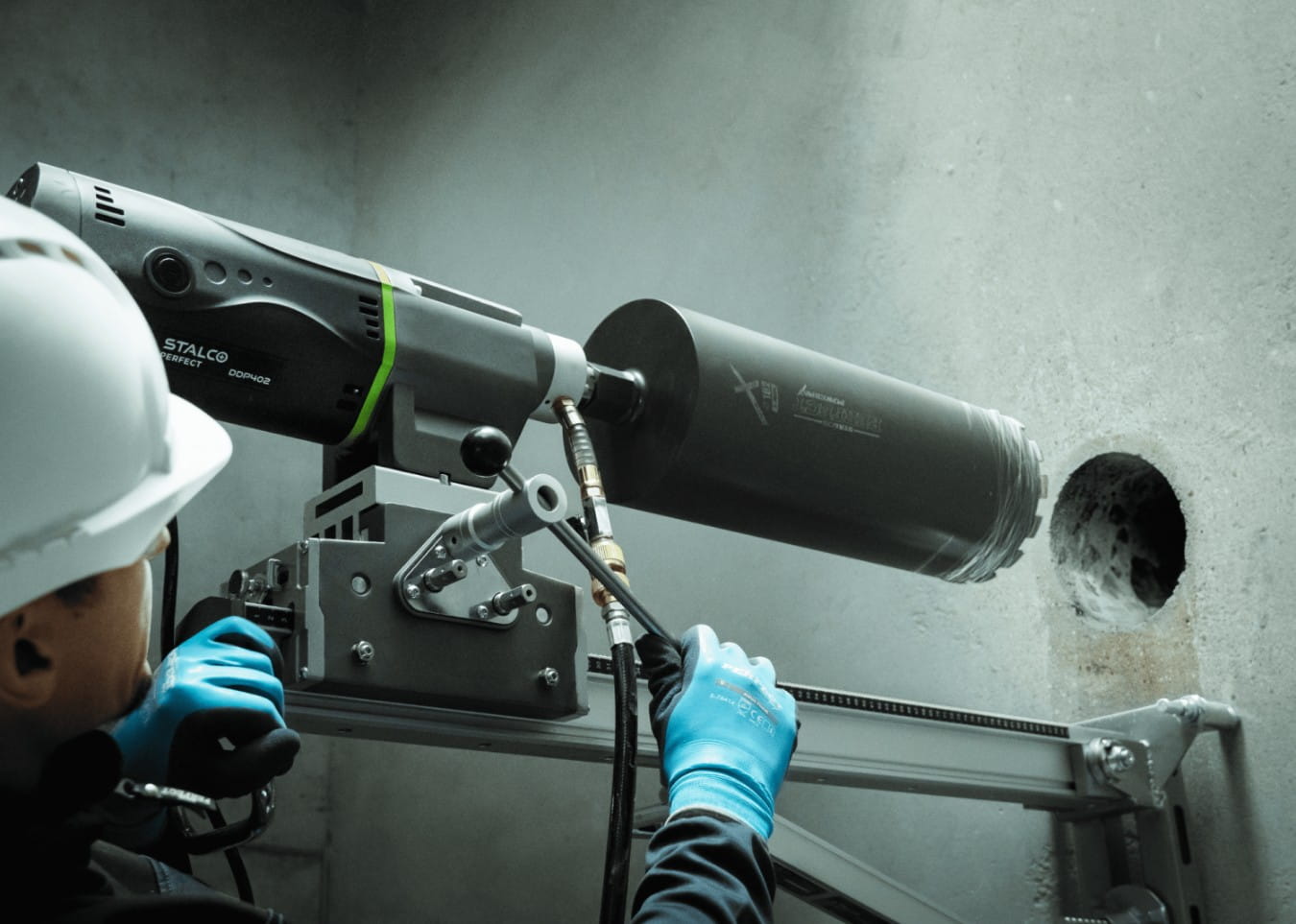 - Obsługa dużych otwornic - maszyna może pracować z otwornicami diamentowymi i wiertłami o średnicy do 402 mm