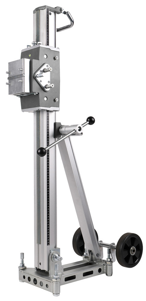 - Stabilność wiertnicy - możliwość zablokowania wózka oraz libella dla precyzyjnego ustawienia kąta wiercenia pozwalają na ułożenie i utrzymanie wiertnicy pod odpowiednim kątem przez cały czas pracy