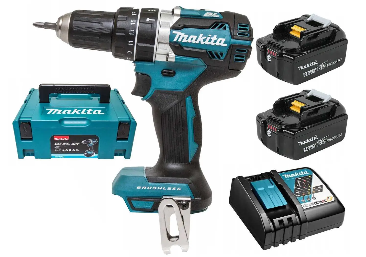 - Dostarczana w walizce systemowej MAKPAC z 2 akumlatorami BL1850B (18 V / 5,0 Ah) i ładowarką DC18RC