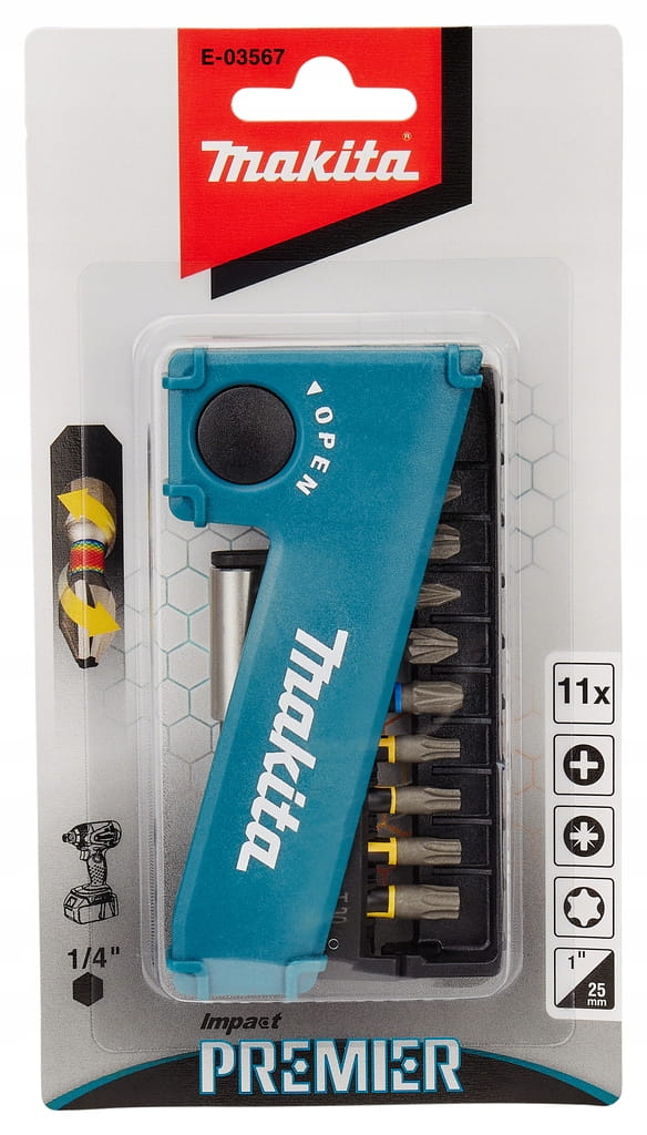 Zestaw końcówek wkrętakowych Makita E-03567 to praktyczny komplet 11 elementów przeznaczony do precyzyjnego i wygodnego wkręcania w różnych materiałach. Wykonane z wysokiej jakości stali końcówki cechują się dużą wytrzymałością i odpornością na zużycie, a poręczny uchwyt magnetyczny ułatwia szybkie mocowanie bitów. Całość zapakowana jest w kompaktowe etui, które ułatwia przechowywanie i transport.