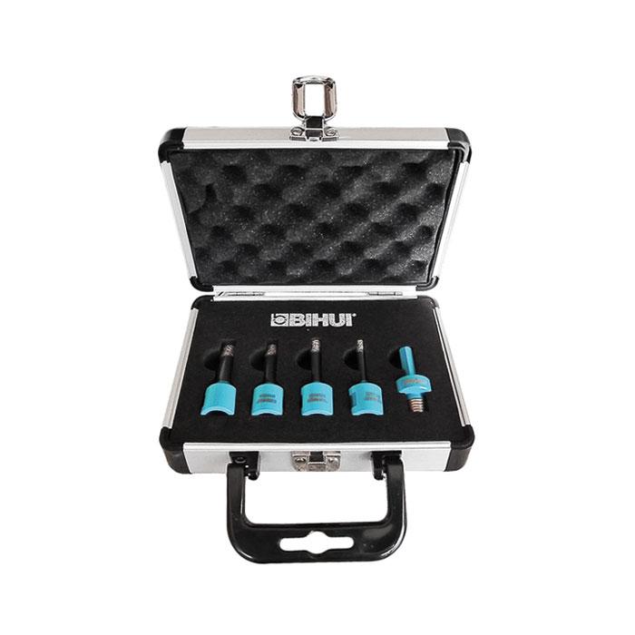 Bihui DBDMK5 to profesjonalny zestaw otwornic diamentowych przeznaczonych do wiercenia w gresie, porcelanie i ceramice. Zestaw zawiera najczęściej używane średnice otworów potrzebne przy pracach instalacyjnych oraz adapter umożliwiający montaż w wiertarce lub wkrętarce. Całość zapakowana w praktyczną walizkę, dzięki czemu komplet jest gotowy do pracy i wygodny w transporcie.