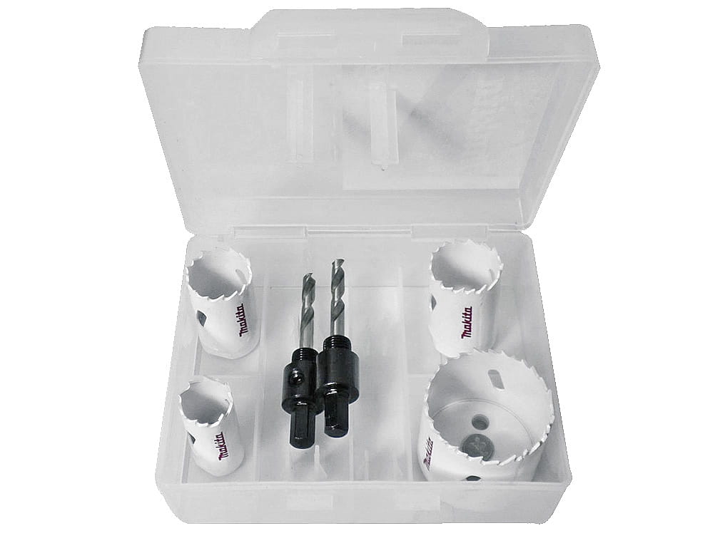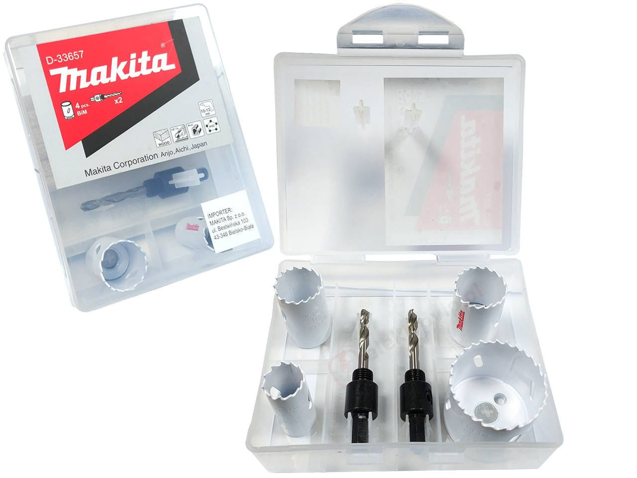 Zestaw otwornic BiMetal HSS i wierteł prowadzących z adapterem renomowanej marki MAKITA. W skład zestawu wchodzą cztery otwornice w popularnych rozmiarach 22, 29, 32 oraz 51 mm zaś całość dostarczana jest w solidnej kasecie z tworzywa sztucznego.