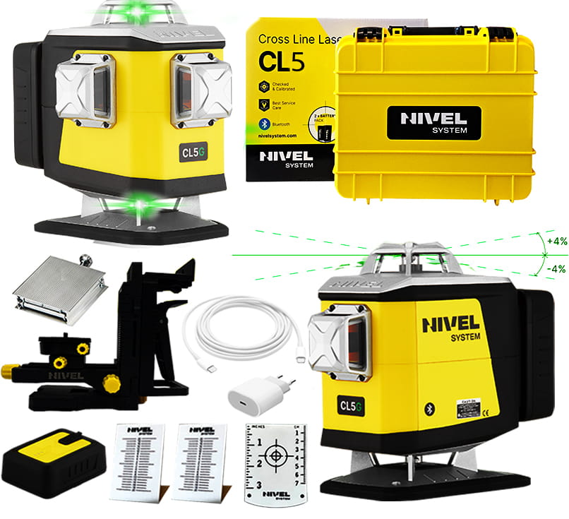 - Nivel System CL5G – 4-płaszczyznowy, zielony laser z elektronicznym kompensatorem i spadkami