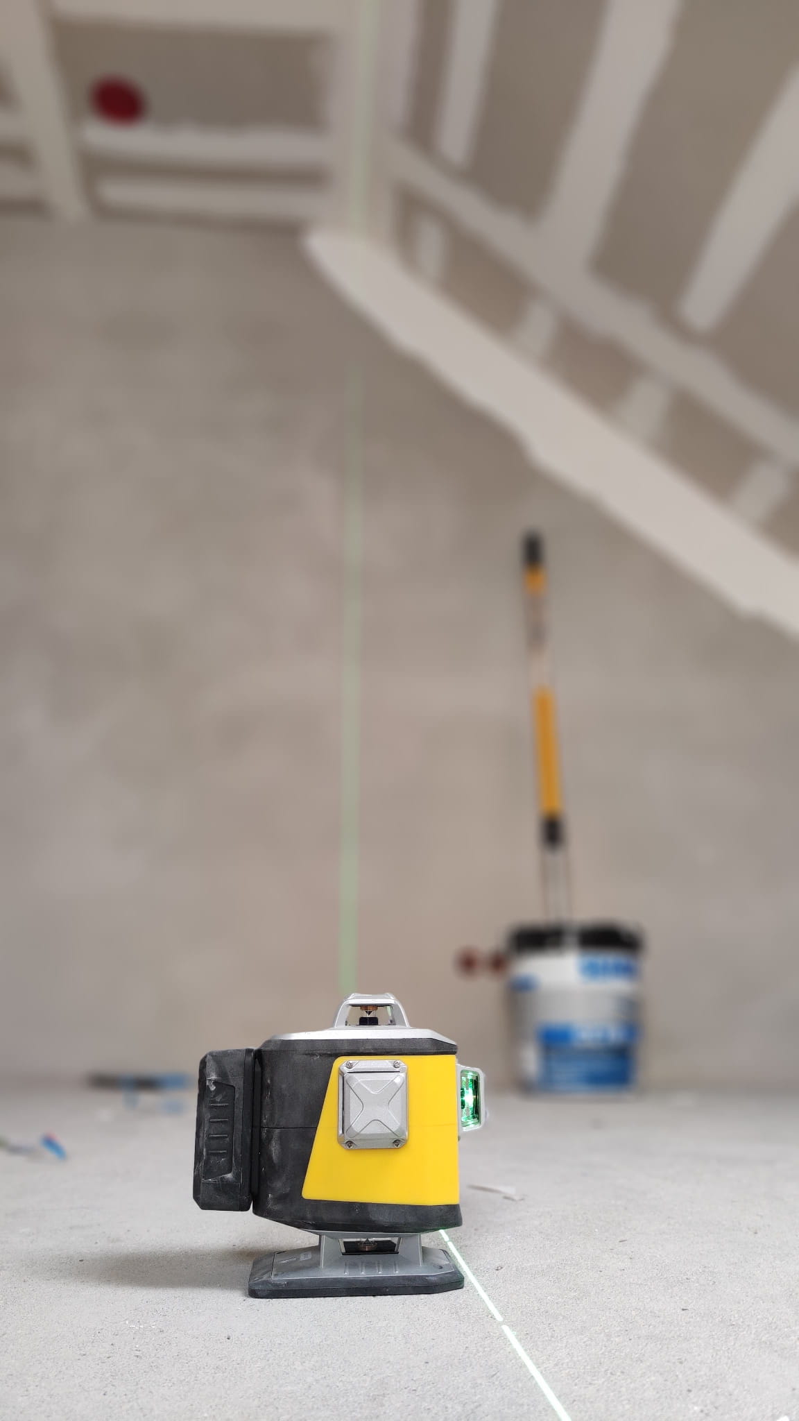 - Adapter i winda laserowa – bezpieczne mocowanie nawet w trudnych warunkach na budowie, dodatkowo możliwość ustawienia na zadanej wysokości, winda laserowa umożliwia precyzyjne dostosowanie dolnej wiązki lasera